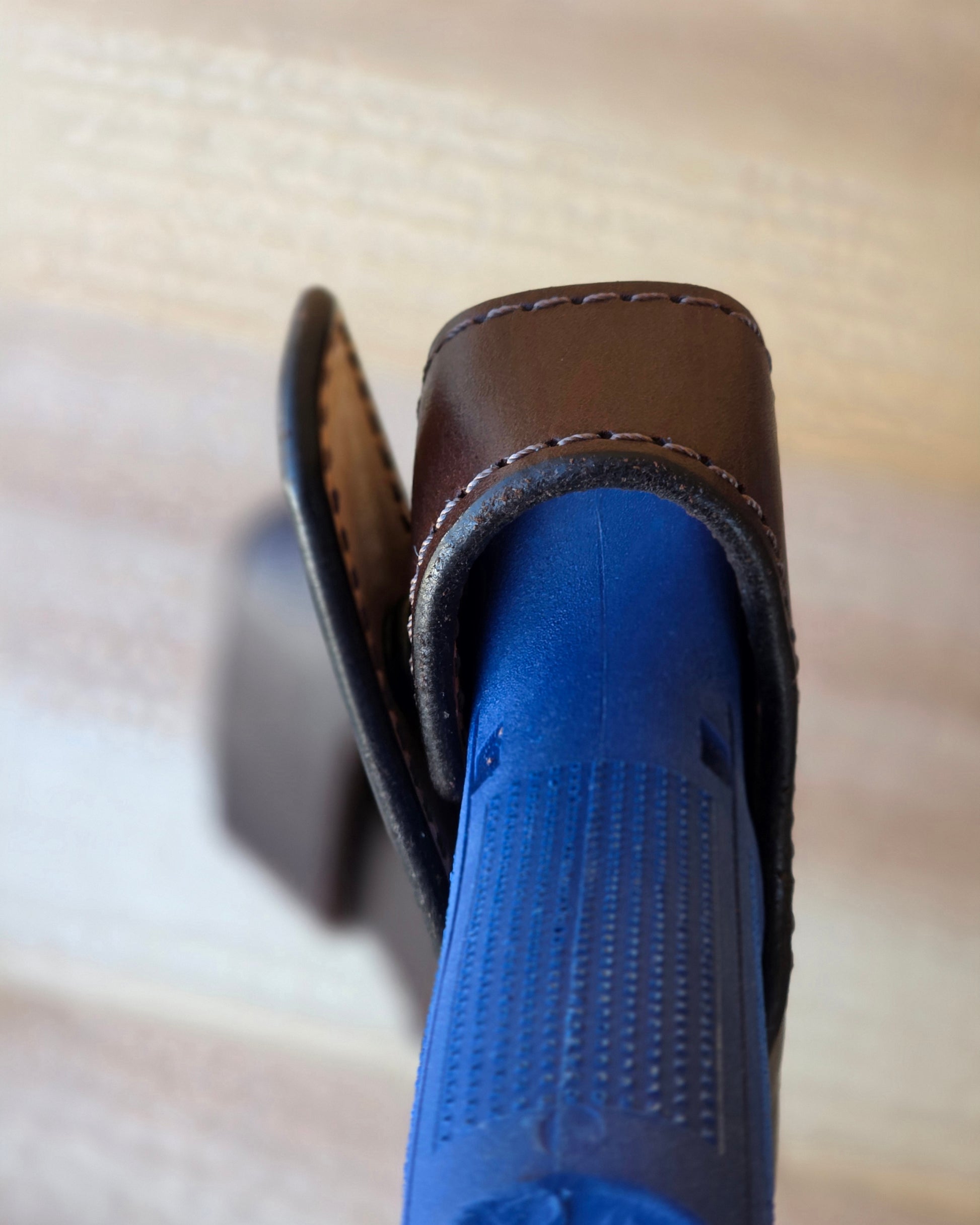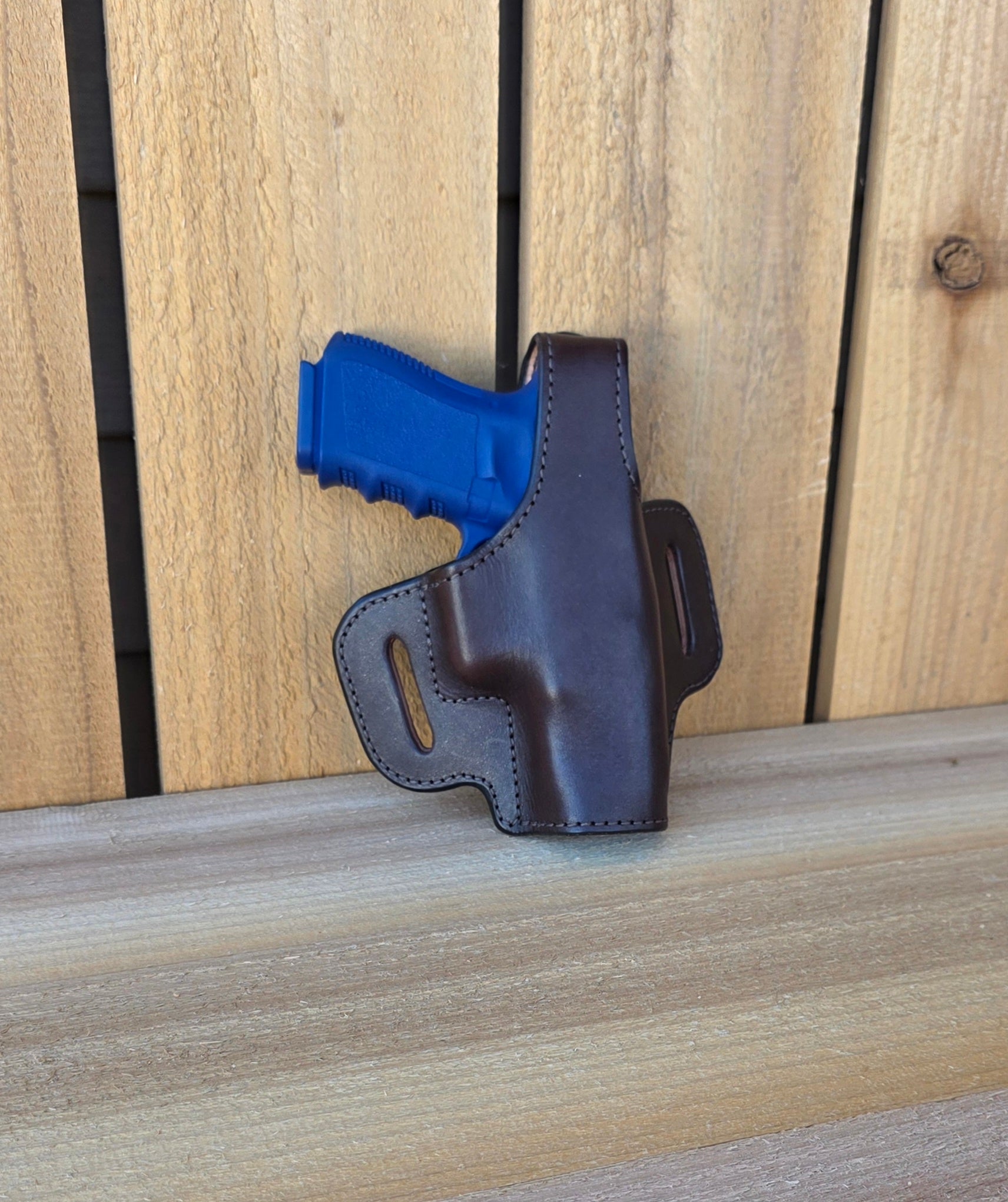 This holster features a thumb break with a directional snap and stiffener. This provides secure gun retention while allowing for a smooth draw when the thumb break is activated while gripping the pistol on the draw. This holster attaches via belt slots and features a 18° forward cant for ease of draw. Right-hand, strong side carry only. Our holsters are constructed from Hermann Oak leather and are fully lined to provide a smooth draw and reduce holster wear on the gun finish. This is a premium saddle leather tanned in St. Louis, MO from American cowhides.